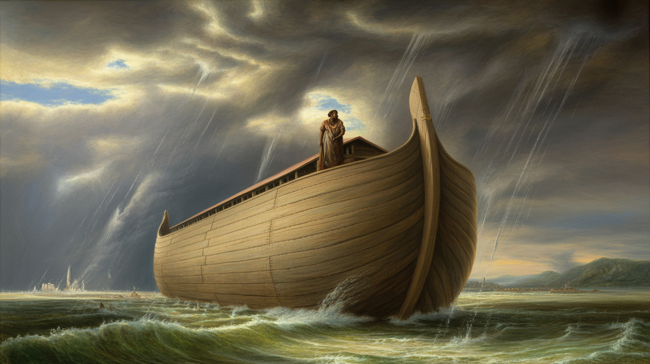 "Noah found grace in the eyes of the LORD" (Genesis 6:8). When wickedness covered the earth, God called one faithful man to build an ark and preserve life. For 120 years Noah preached righteousness while building the massive vessel. When the flood came, only eight souls were saved — Noah, his wife, and his three sons Shem, Ham, and Japheth with their wives. From these eight, all the nations of the earth descended.